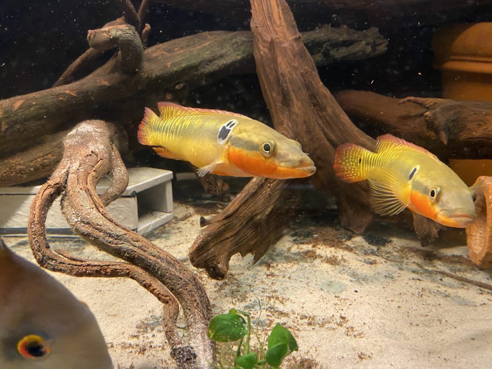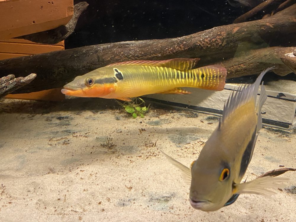 Über eine Zucht ist mir nichts bekannt. Als Beifische sind größere robuste Cichliden geeignet, bei mir aktuell mit Uaru amphiacanthoides und Geophagus sveni. - Ernährung: